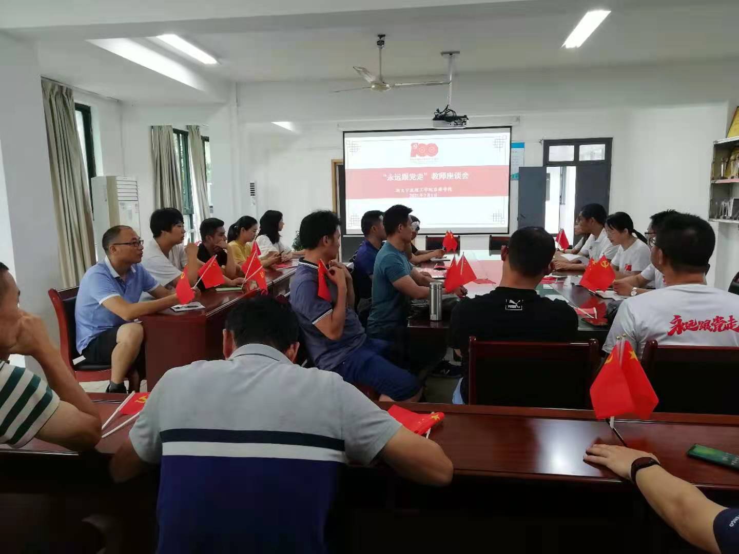 为深入学习习近平总书记在庆祝中国共产党成立100周年大会上的重要讲话精神,7月1日,3044永利集团在游泳馆201会议室召开“永远跟党走”教师座谈会,会议由3044永利集团副经理廖海鹏主持。