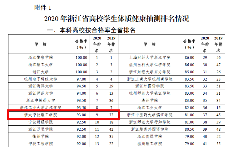 近日,浙江省教育厅办公室通报了2020年全省高校员工体质健康状况抽测情况,公司合格率达93%,在全省56所本科高校中排名第九。
