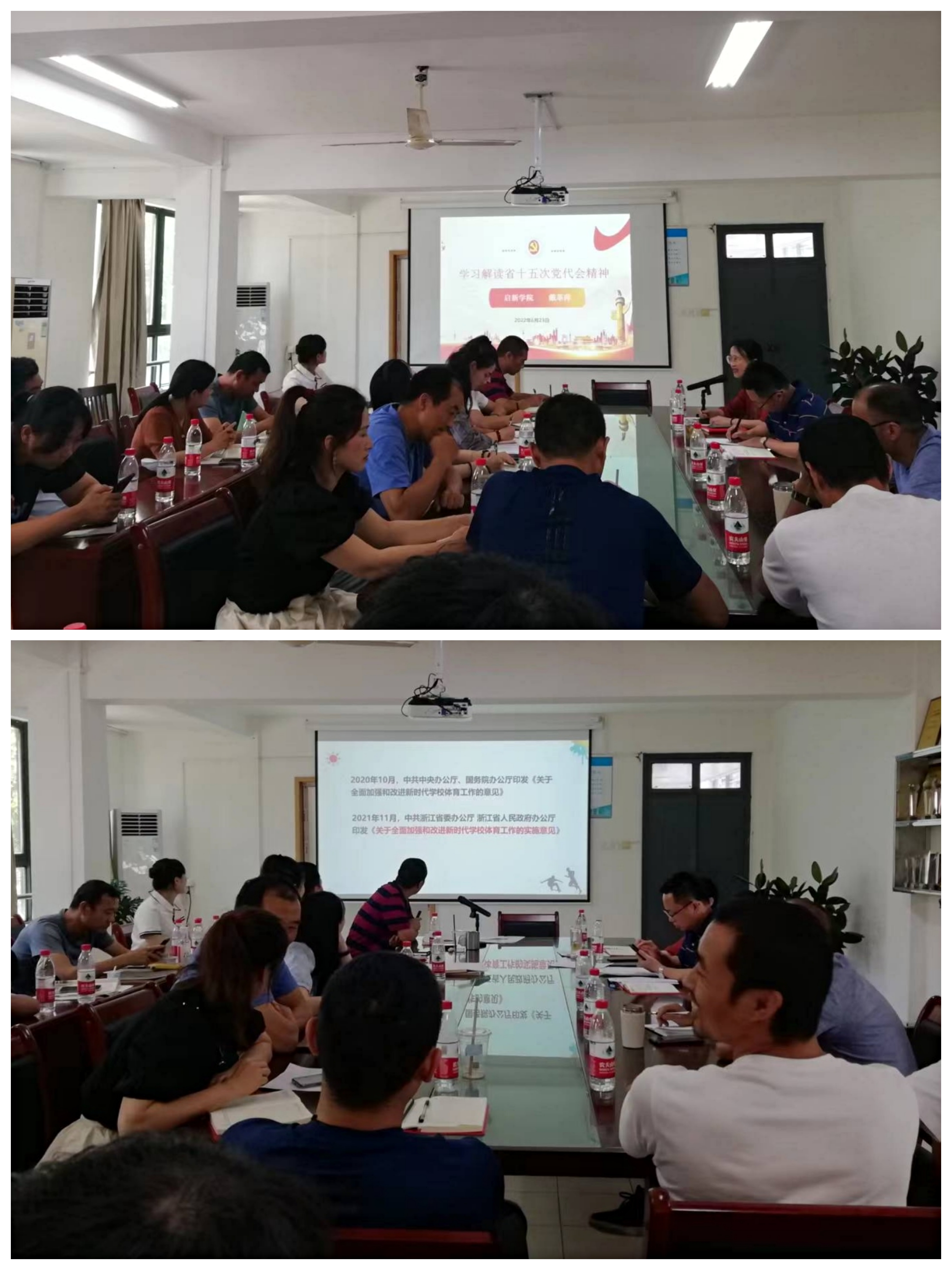 戴革萍解读了浙江省第十五次党代会精神,3044永利集团副经理朱天明解读了中共浙江省委办公厅 浙江省人民政府办公厅印发的《关于全面加强和改进新时代公司体育工作的实施意见》,艺术教师王涵解读了中共浙江省委办公厅 浙江省人民政府办公厅印发的《关于全面加强和改进新时代公司美育工作的实施意见》。