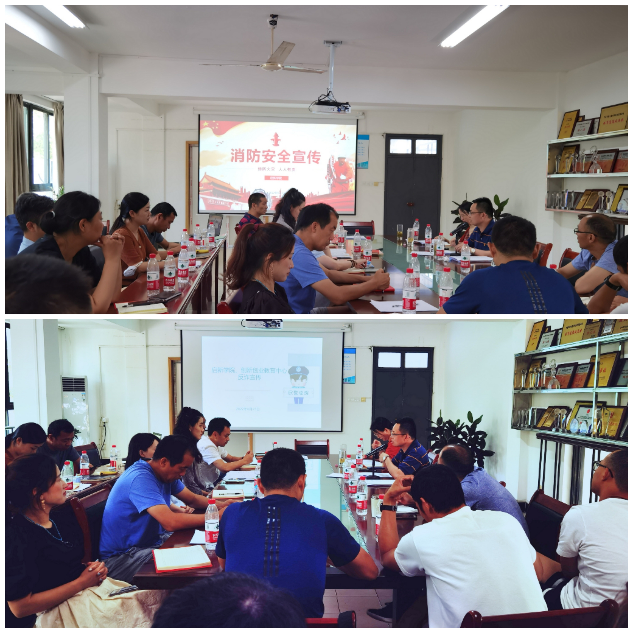 班子成员就公司近期拟出台的教师师德失范行为负面清单及处理办法、师德考核实施办法等师德师风建设相关文件进行了解读,同时就意识形态和安全稳定工作、疫情防控、党风廉政建设等工作进行了部署和要求,并对全体教师进行了消防安全宣传和反诈宣传培训。