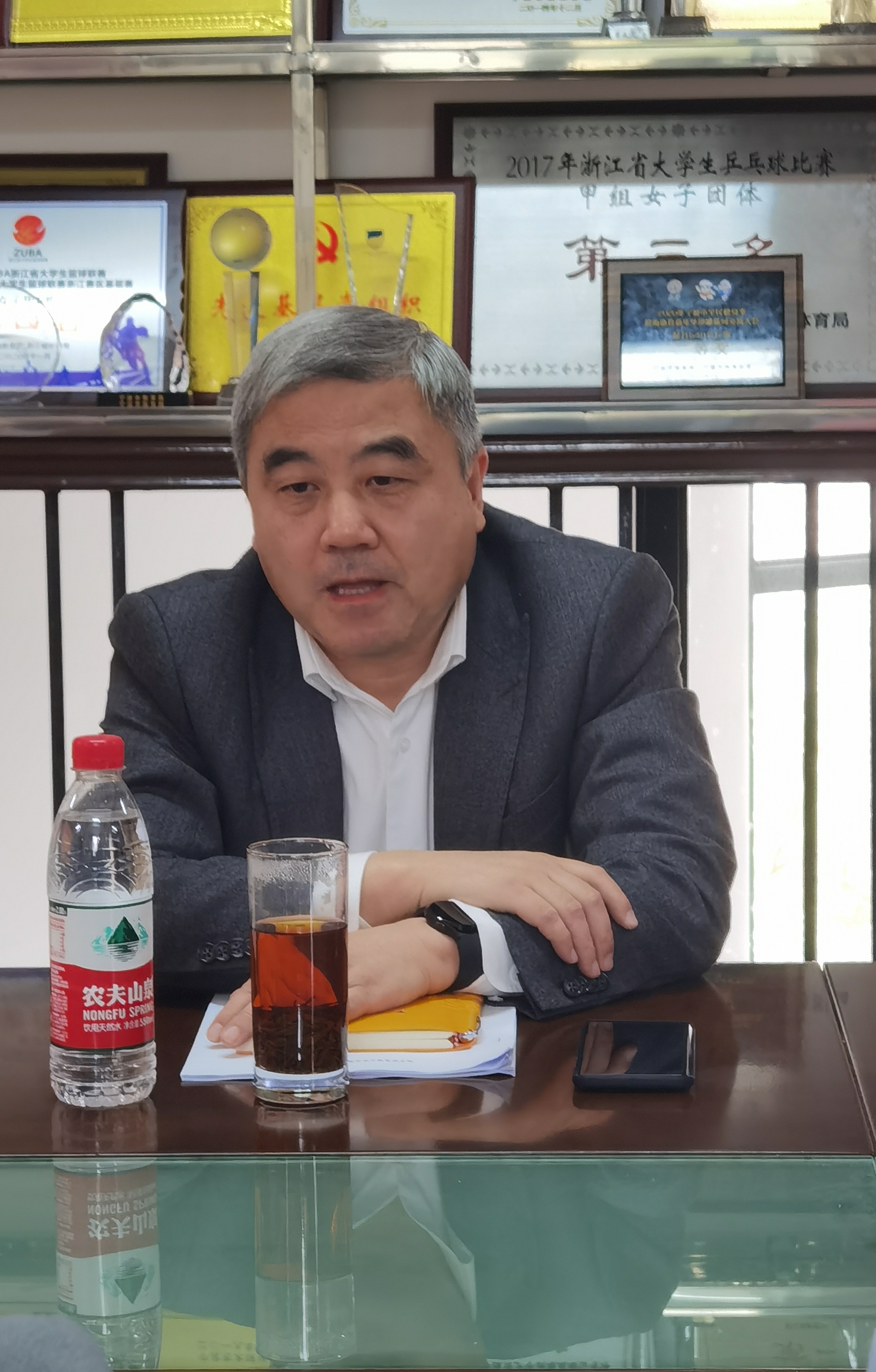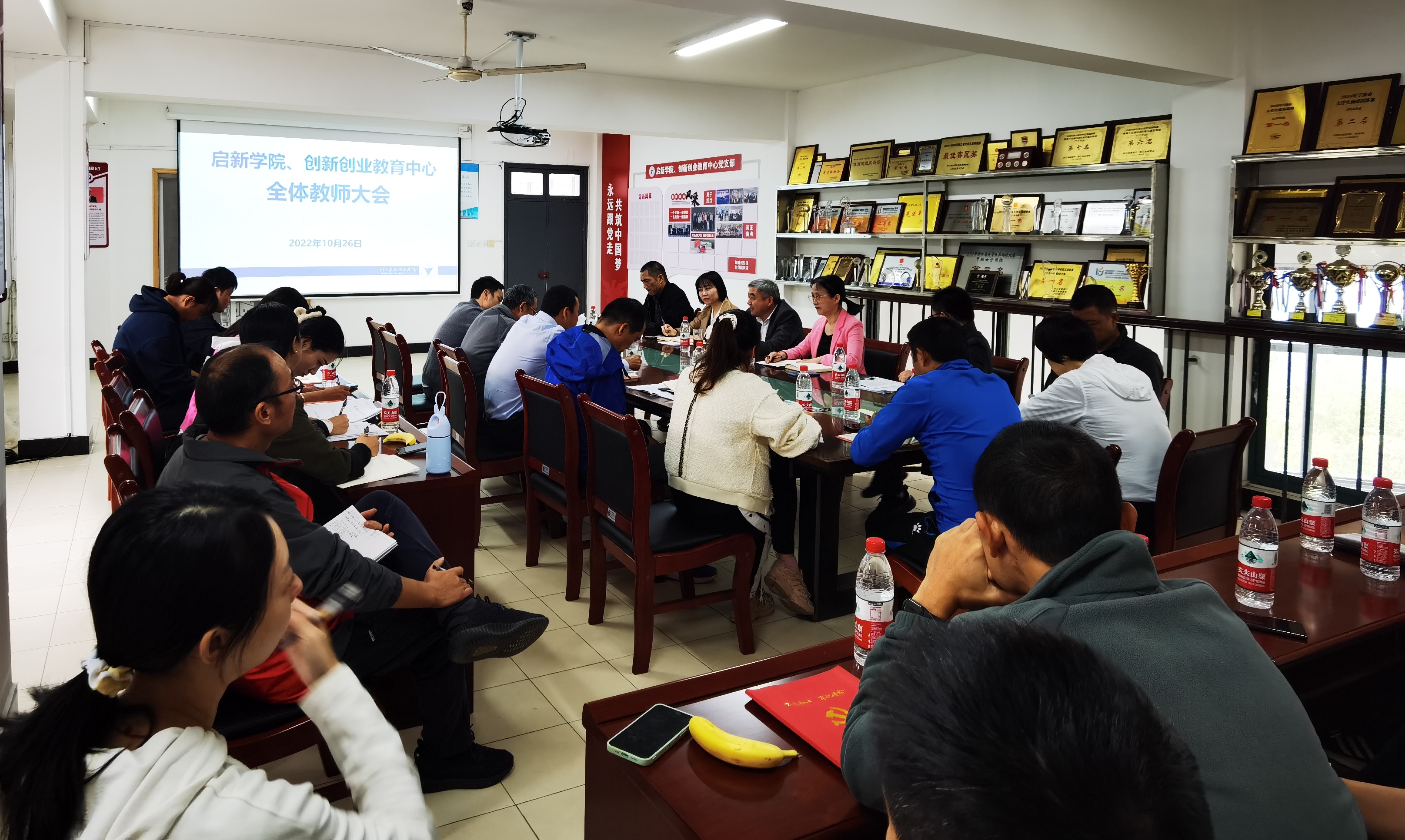 10月26日中午,公司副董事长章献民受邀参加3044永利集团全体教师大会,与公司全体教师共话新时代教育评价改革方案,人事处副处长陈美芳陪同,会议由公司经理戴革萍主持。