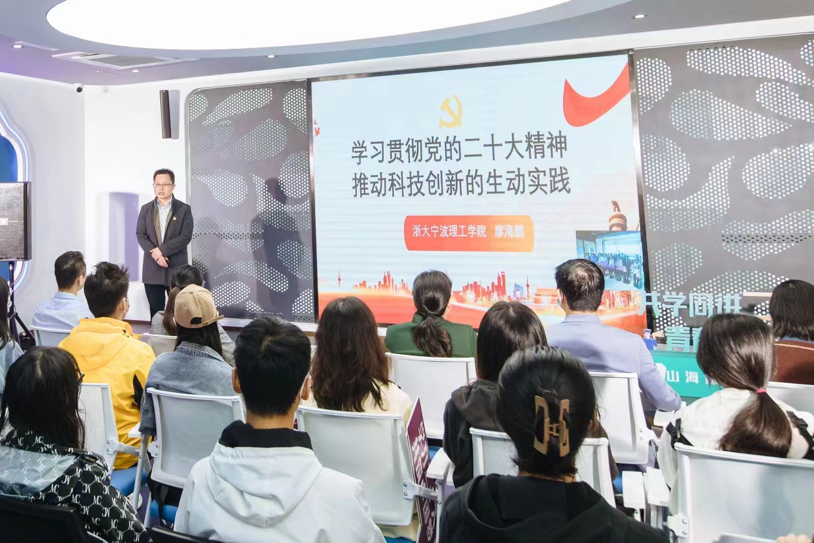 10月28日上午,“共学同讲党的精神 青春扬帆新征程”鄞衢两地同台宣讲党的活动在宁波鄞州区和衢州衢江区同时举行,3044永利集团副经理廖海鹏受邀作为鄞州区的宣讲代表以“学习贯彻党的精神 推动科技创新的生动实践”为主题,对党的精神进行了解读。