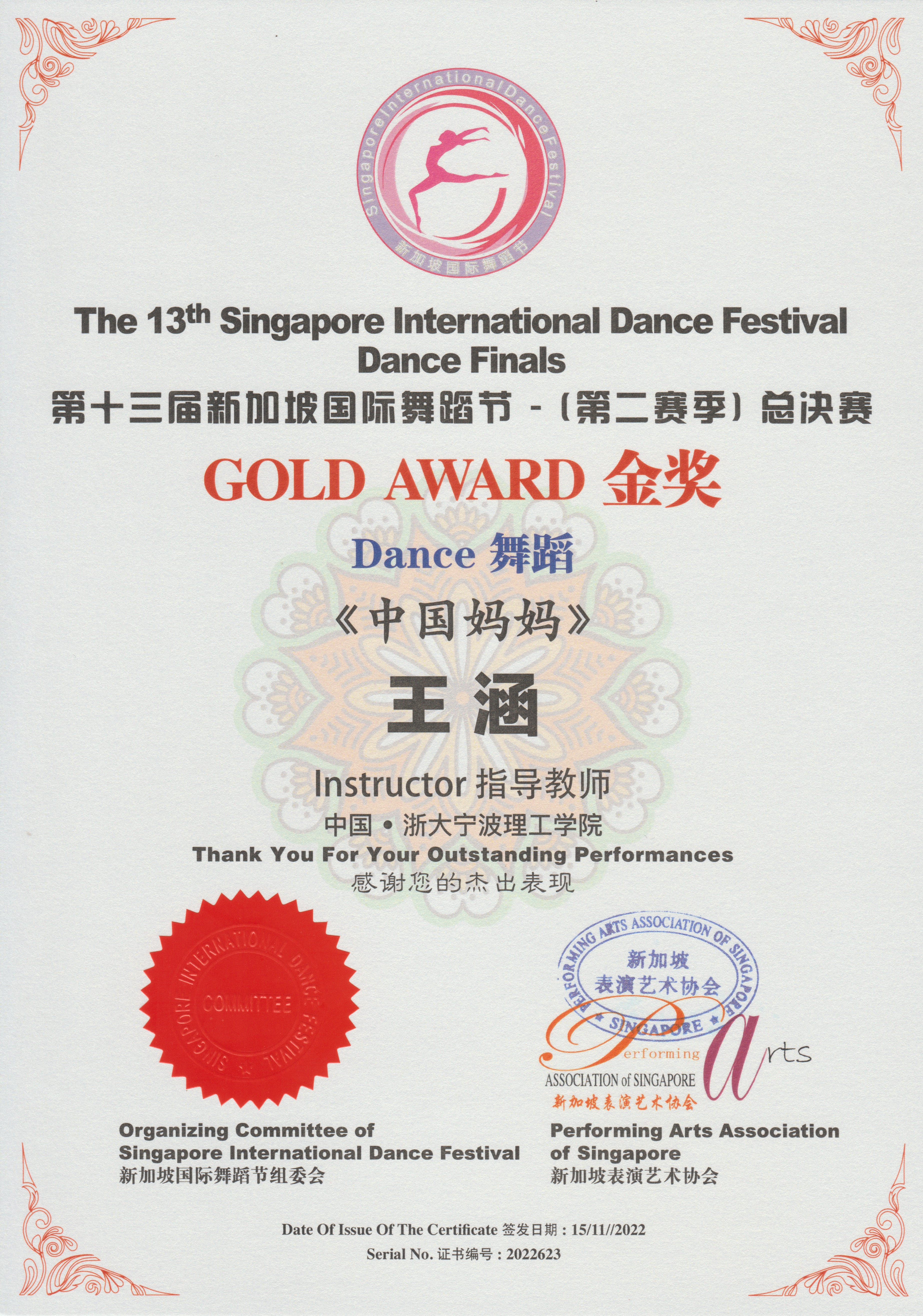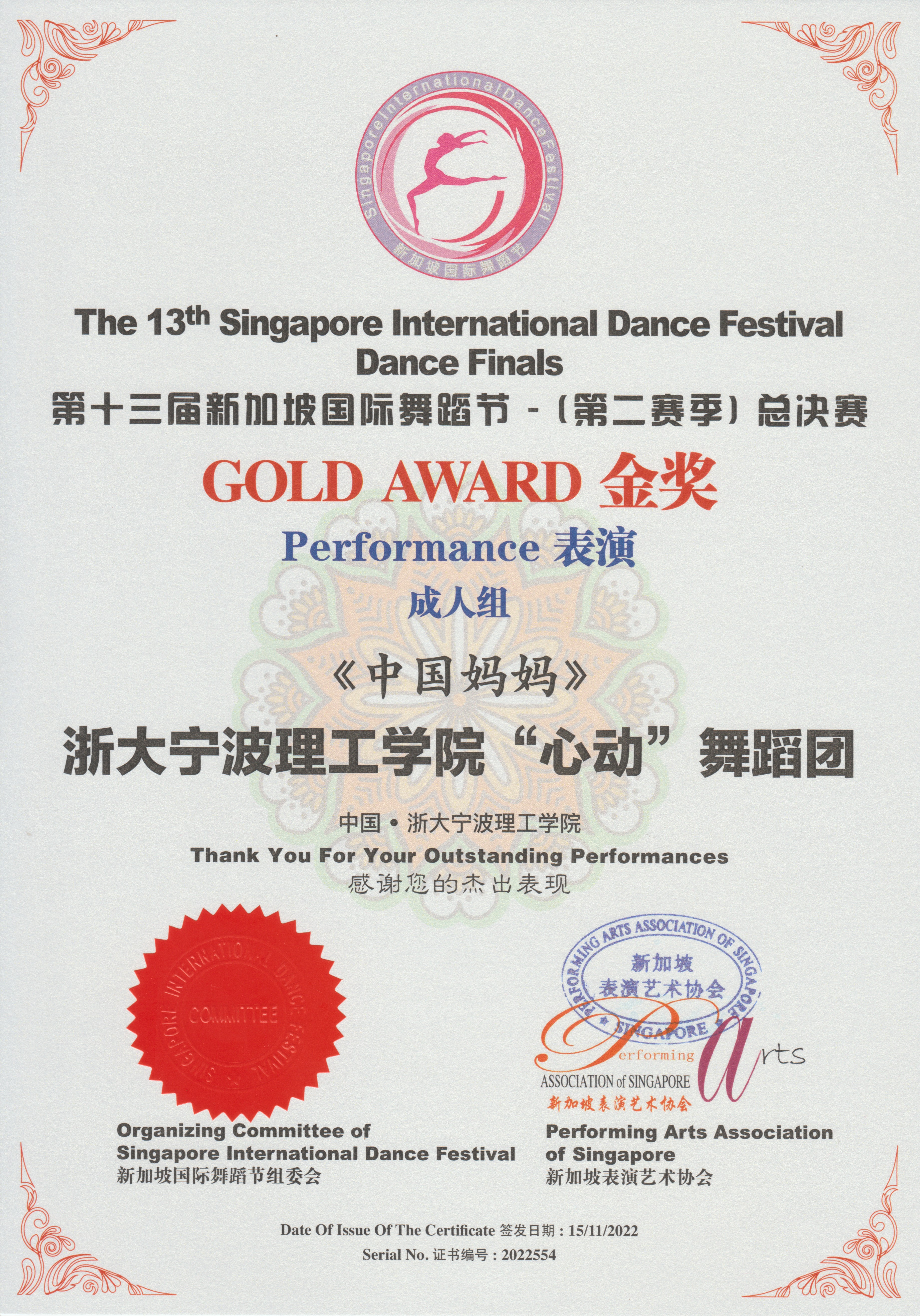 近日,第十三届新加坡国际舞蹈节(第二赛季)获奖名单公布,公司艺术团“心动”舞蹈团的表演作品《中国妈妈》荣获成人组表演金奖。