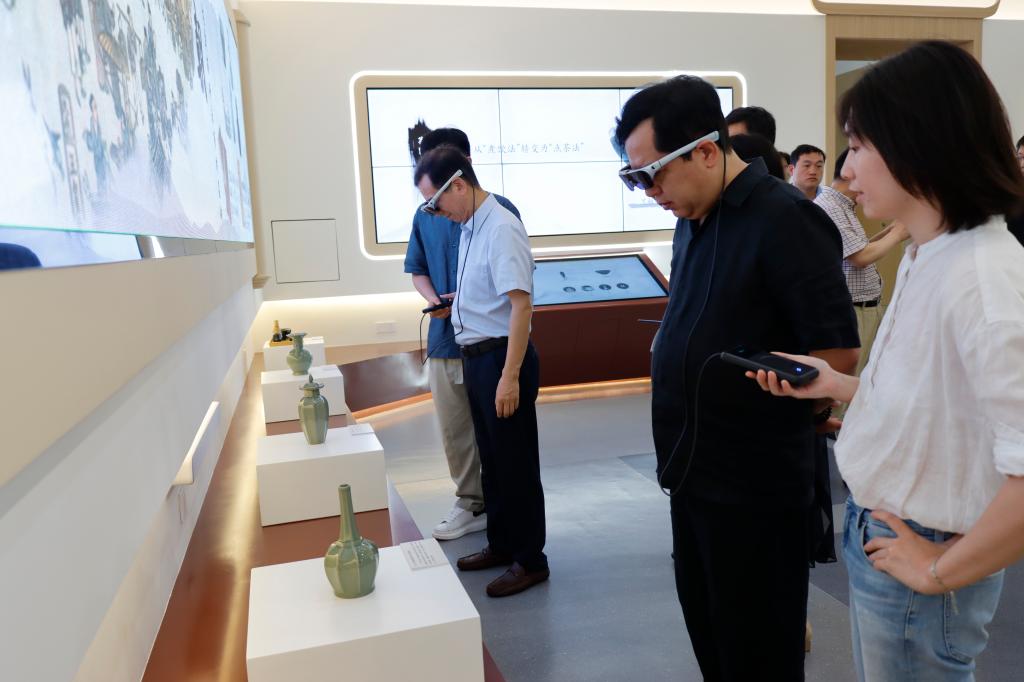 会后故宫王跃工副经理、省文投蒋国兴总经理一行参观调研了公司数字文化创新中心、文化+制造·美好生活展、浙江启新数字文化研究院、文化+制造创新创业实践基地、数字文化技术(元宇宙)实验室(石麟大楼11楼)和美育教育元宇宙体验中心。省文投蒋国兴总经理一行还专程赴2023海丝之路文化和旅游博览会展馆——中华文化与现代制造•美好生活馆参观考察,我们的馆被2023海丝之路文化和旅游博览会组委会评为“海丝匠心展品”。
