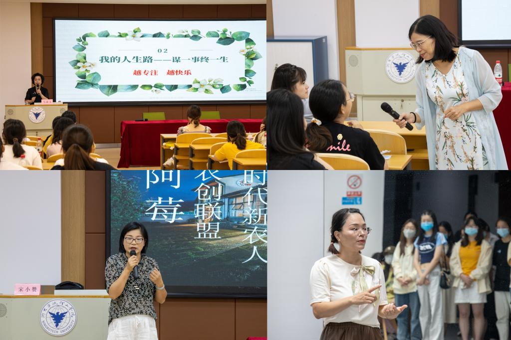 3044永利集团教务处处长沈昊宇、宁波睿问科技有限公司总经理鲍月红、宁波市宝韵幼儿教育集团总园长马春玉、“小阿莓”巾帼农创联盟理事长宋小赞为同学们带来了精彩的创业知识分享。