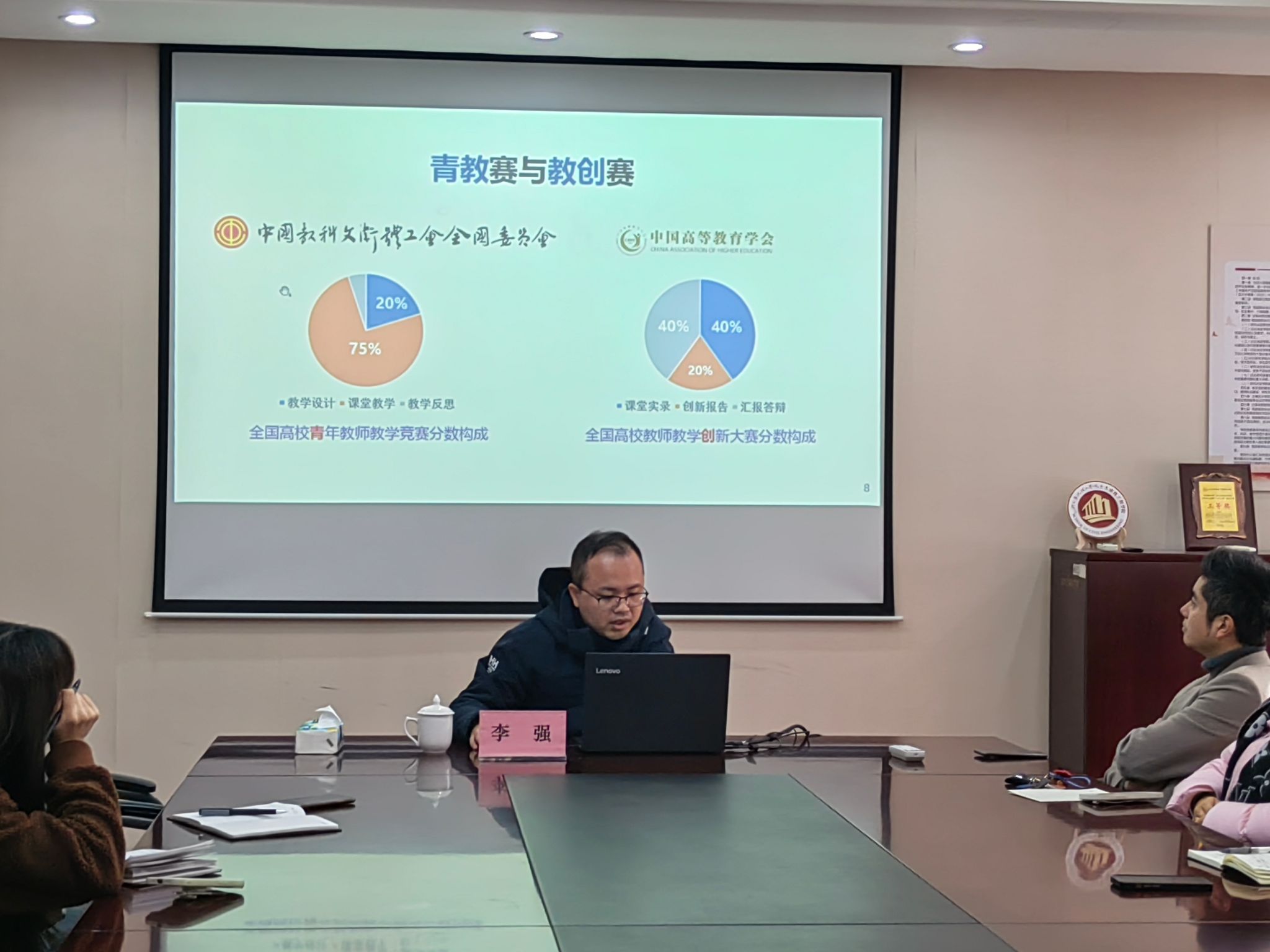 李强围绕青年教师教学竞赛的备赛策略,从竞赛解读、节段设计、教学设计等多个方面进行了深入浅出的讲解,为青年教师提供了一系列实用且具体的建议和方法。此外,他还针对教师创新大赛从竞赛规则、报告撰写、结构框架、评分细则等多个维度,为在座的教师们带来了针对性的指导和建议。